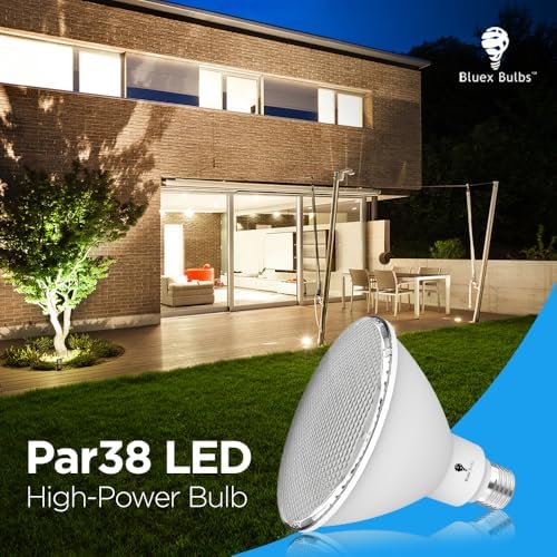 About this item High Power Bulb: Suitable For Wet Location. This Bluex Bulbs PAR38 250w led bulb High Lumen Bulb boasts 2800 lumens ! This bulb will light up – Dimmable 0%-100%,no-flicker or strobe, no humming or buzzing led flood lights. Energy Saver. Enjoy lighting the way in the dark and save money on electric bills at the same time. This low, 20-wattage bulb (250-watt equivalent) uses less energy and endures longer, making it the perfect replacement to an incandescent bulb our halogen light bulb. High-Performance. Easy to install with an E26 base, each 40-degree wide flood bulb emits a daylight white 5000K color temperature to light up your property, assuring night safety and improving security. Versatile Use.this High-Power Bulb is ideal for outdoor, backyards, garages, porches, sheds, driveways, warehouses and much more. Safe Alternative. Unlike fluorescent bulbs, these LED lights are a perfect Halogen replacement Flood Spot Lights do not contain mercury and won’t release any hazardous gases. As such, there’s no need to worry if a bulb breaks or about having to recycle it.