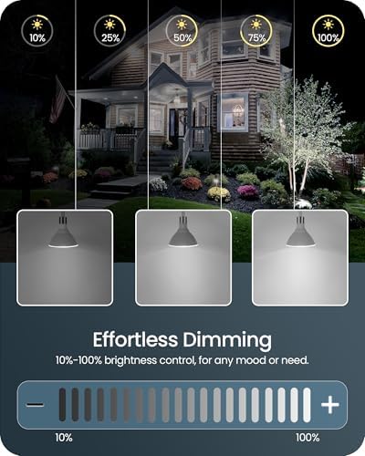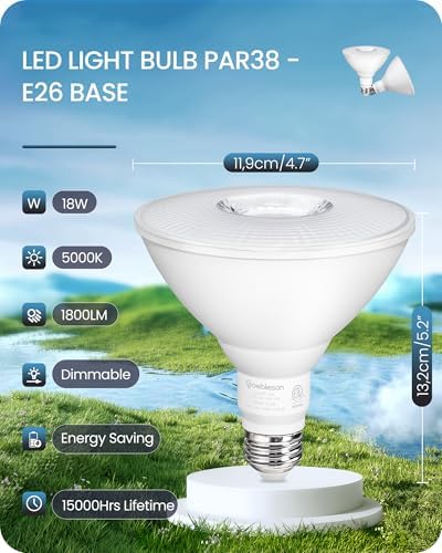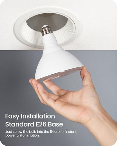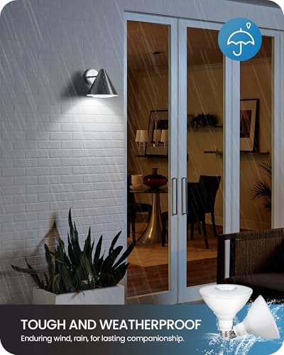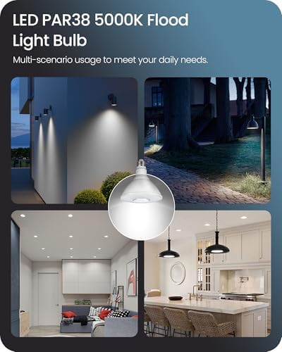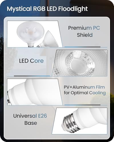 About this item Super-long Lifespan & Waterproof Design: Each bulb features an ultra-long lifespan of up to 15,000 hours, ensuring high durability. With an IP65 waterproof rating, it effectively withstands rain during outdoor use, ensuring stable lighting Dimmable & Excellent Performance: Seamless 10%-100% brightness adjustment creates perfect ambiance. Enhanced with quality PC lampshade, PV materials, and an aluminum film, it provides moisture resistance and efficient heat dissipation for long-lasting performance Multi-Scene Application for Indoor and Outdoors: The LED flood light bulb is suitable for outdoor use such as porches, patios, and garages, as well as indoor areas like living rooms, bathrooms, and bedrooms, adding a unique charm to your life Plug and Play, ETL-Certified: Equipped with a standard E26 base, the bulb is effortless to install. Just screw the bulb into the E26 base to complete the installation. The bulb has passed the ETL safety certification, ensuring safe and reliable use Super-long Lifespan & Waterproof Design: Each bulb features an ultra-long lifespan of up to 15,000 hours, ensuring high durability. With an IP64 waterproof rating, it effectively withstands rain during outdoor use, ensuring stable lighting
