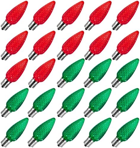 About this item Energy Saving Bulb. Enjoy christmas tree light bulbs without the high electric bills. This low, 1-wattage red light bulb green light bulb light bulb christmas tree indoor and outdoor use uses less energy and endures longer, making it the perfect replacement to an incandescent light. Artistic Lighting Effects. Replace a boring light bulbs this C9 light bulb christmas lights red light bulbs green light bulb to bring any party to life. Great for Halloween parties, special occasions and as a nightlight, these bulbs will add a touch of color to any setting with this red night light bulbs , Versatile Use. Small Bulb yet powerful bulb christmas lights 7 lights led night light bulb, these mini LED Bulbs are suitable for bedroom lights, chandeliers, Christmas lighting, signs, appliances, wall nightlight, salt lamps and more c9 Intermediate base. Safe Alternative. There’s no need to worry if a red led bulb green led bulb breaks or about having to recycle it. Unlike fluorescent bulbs, these LED lights c9 christmas lights bulbs do not contain mercury and won’t release any hazardous gases. Long Lifespan. Each christmas light bulb can last up to 10,000 hours, providing long-term use and making it virtually maintenance-free.